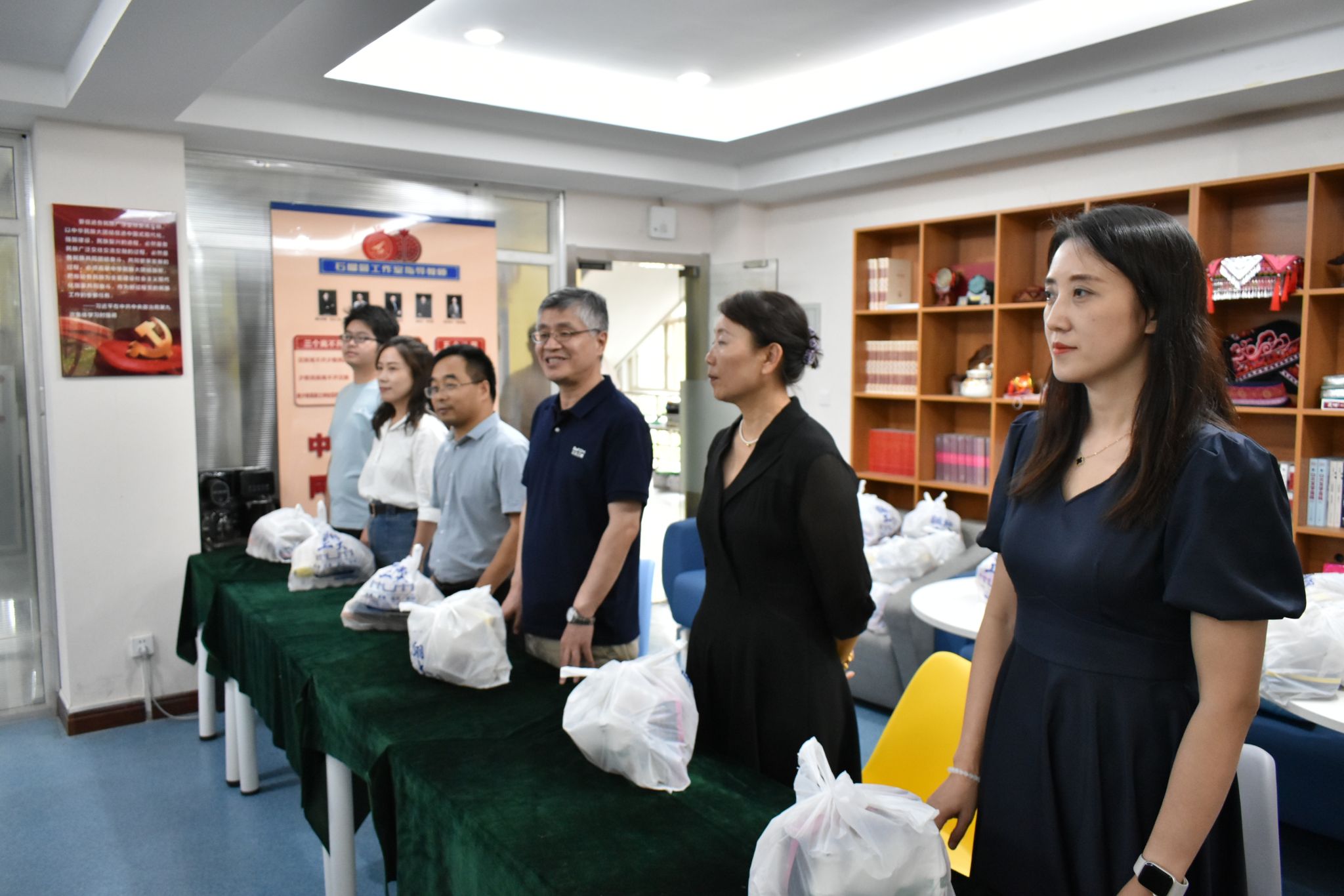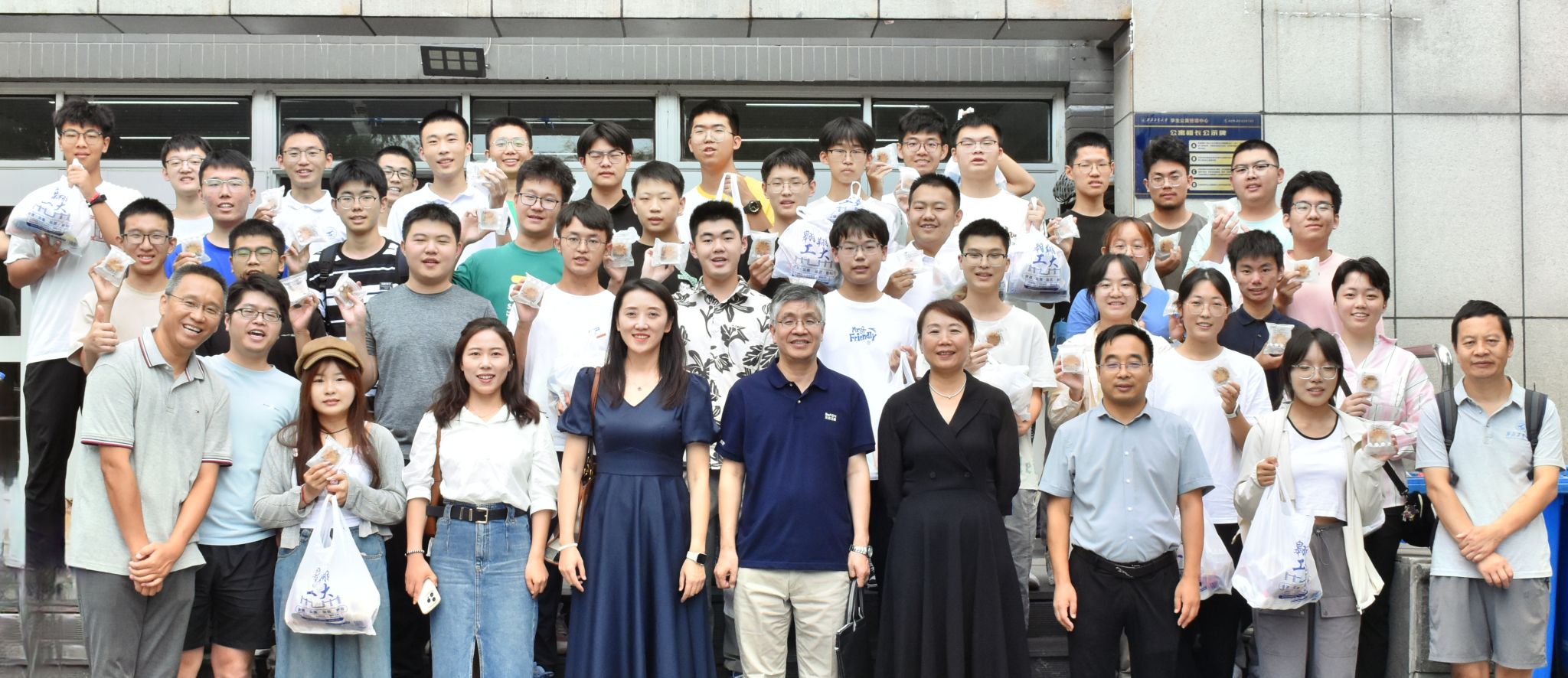 丹桂飘香又中秋,数统萌新度佳节。为进一步强化学校、学院人文关怀,让学院新生开心圆满地度过中秋佳节,2024年9月13日,数学与统计学院院长聂玉峰、党委书记王莉、党委副书记张莹、副院长郭千桥与新生班级辅导员、班主任们深入学生宿舍,为全体大一新生送上学生处集体采购的团圆月饼以及祝福零食礼包,38个新生宿舍学生代表参会领取,场面温馨,氛围感人。